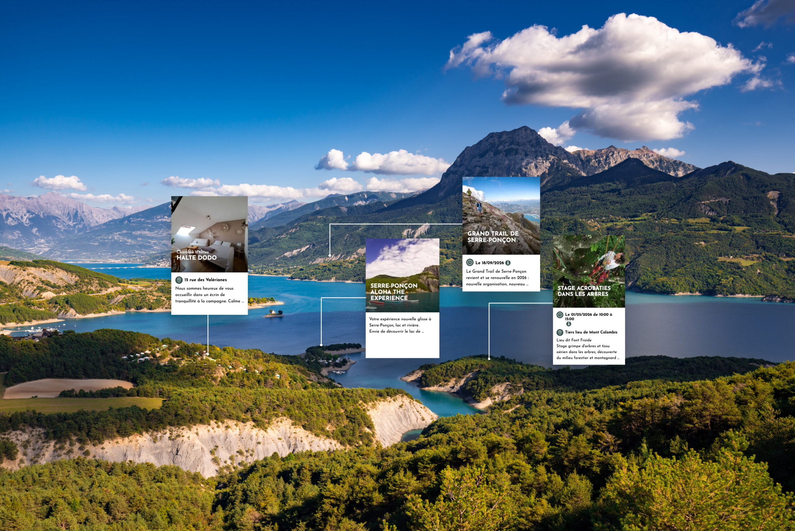 WebSenso intègre nativement Apidae et Tourinsoft, les deux principaux systèmes d’information touristique français. L’annuaire des entreprises et associations du territoire, les événements à venir, les équipements : tout est synchronisé automatiquement depuis les bases mutualisées des offices de tourisme, sans ressaisie. Pour les territoires qui utilisent Geotrek, la passerelle Geotrek/Apidae que nous avons développée assure en plus la synchronisation des itinéraires de randonnée.