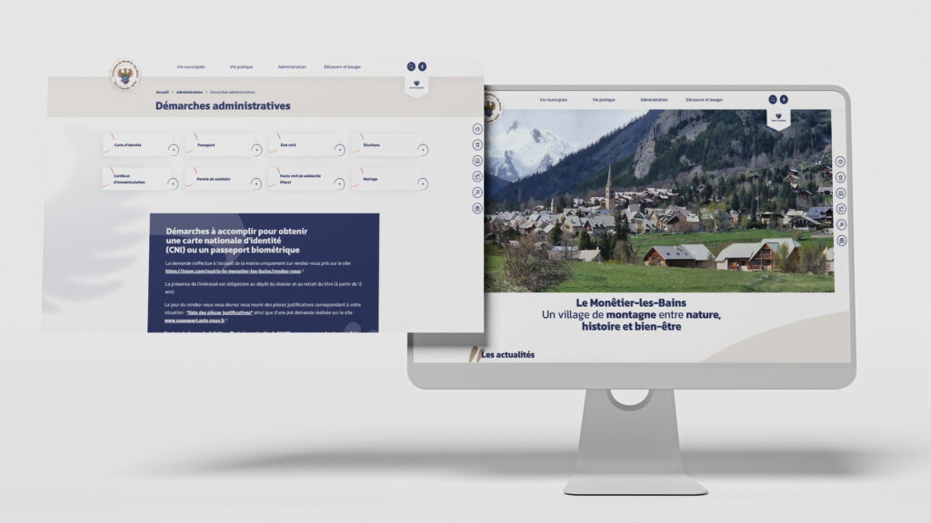 Site sobre et fonctionnel construit sur Drupal, le site de la Mairie du Monêtier-les-Bains couvre l’essentiel des besoins d’une commune de montagne : démarches administratives, vie locale, patrimoine et tourisme. La navigation claire et l’identité visuelle laisse parler les paysages haut-alpins.