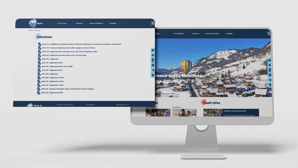 Construit sur Drupal, le site de la Mairie de Praz-sur-Arly propose une navigation soignée et des services bien pensés (paiement en ligne, alertes SMS, flux RSS).