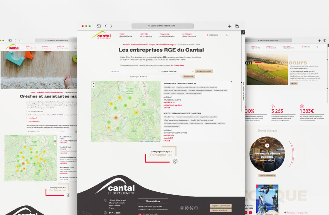 La navigation est construite en fonction de vos contenus et de votre structure. Un portail départemental avec des dizaines de rubriques n’appelle pas la même organisation qu’un site de commune de 2 000 habitants. Nous partons de vos usages réels, pas d’un modèle standard adapté à la marge.